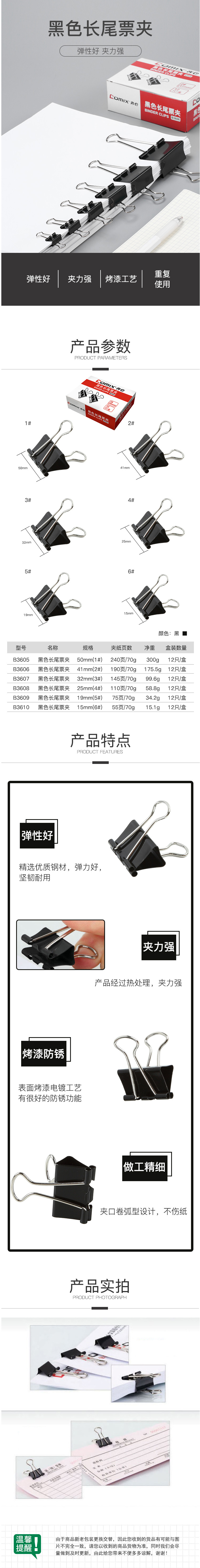 商品名称:齐心 B3608黑色长尾票夹 4# 25mm 12只/盒