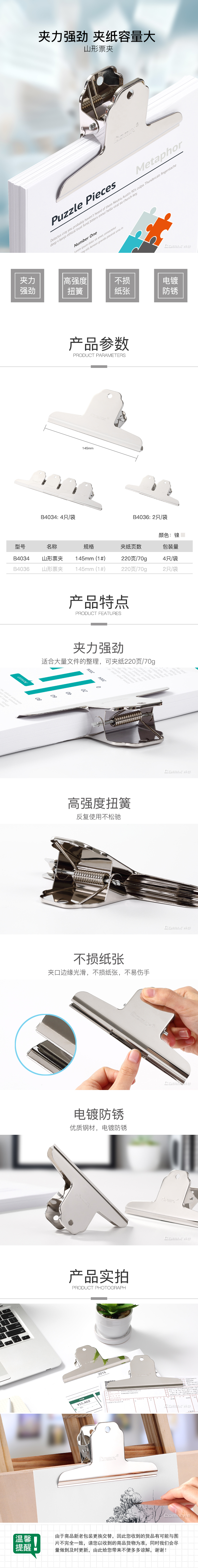 商品名称:齐心 B4034 山形夹 1#145mm(4只/套)