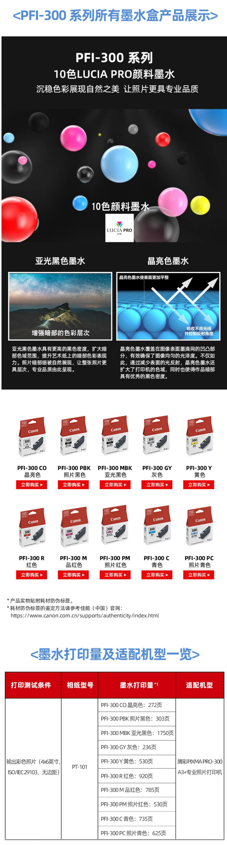 佳能(Canon) PFI-300 CO 晶亮色墨盒 (适用PRO-300)