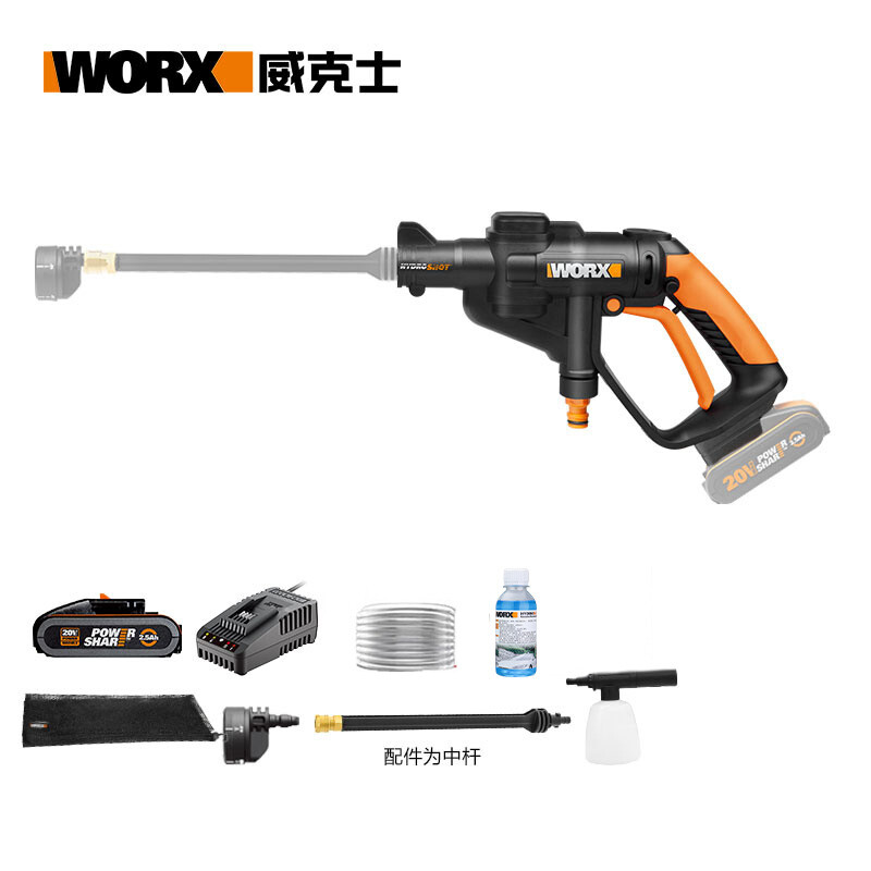 商品名称:威克士(Worx)20V家用锂电无线洗车机WG629E.4(单电升级版)高压清洗机洗车水枪水泵汽车摩托车用品
