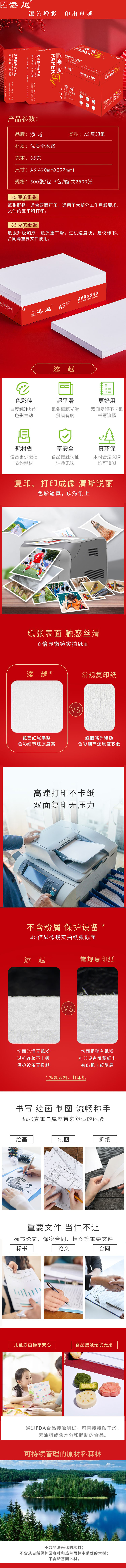 商品名称:添越 (红) 85克A3 5P 500张/包 5包/箱