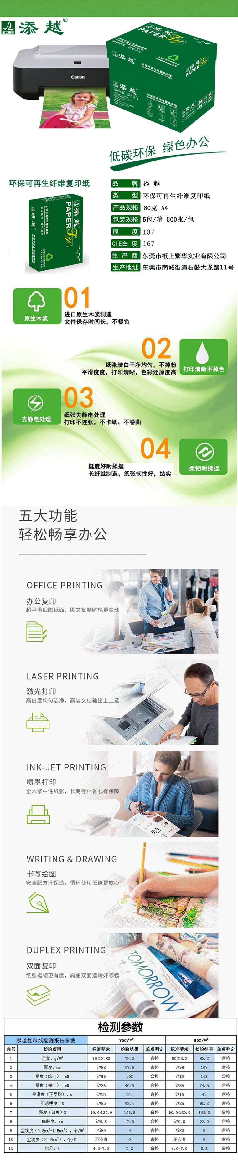 商品名称:添越 (绿) 80克A4 500张/包 10包/箱