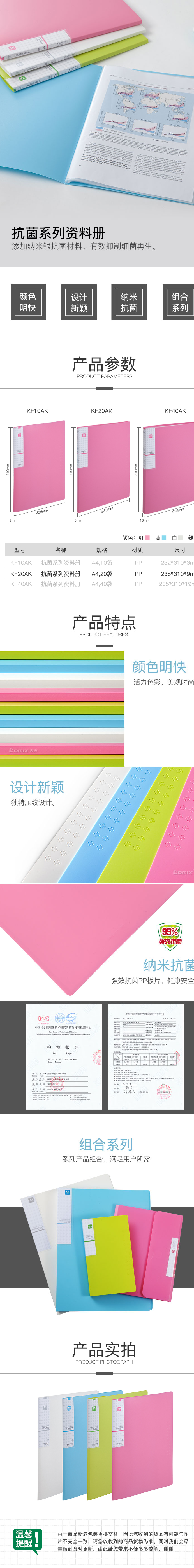 商品名称:齐心 KF20AK 抗菌资料册 A4 20袋