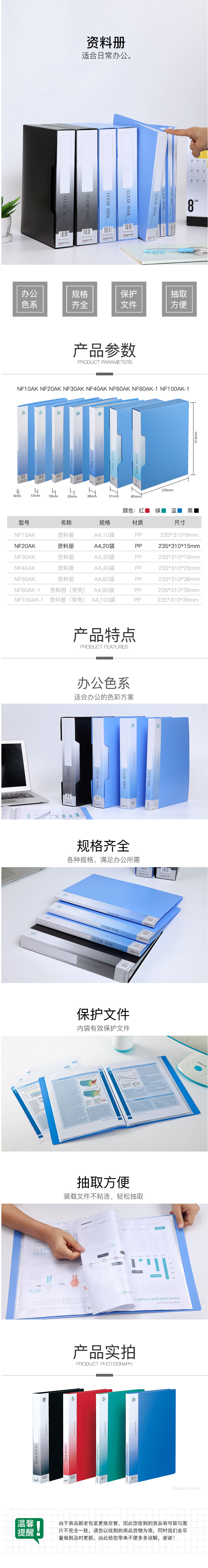 商品名称:齐心 NF20AK 办公必备 资料册 A4 20袋